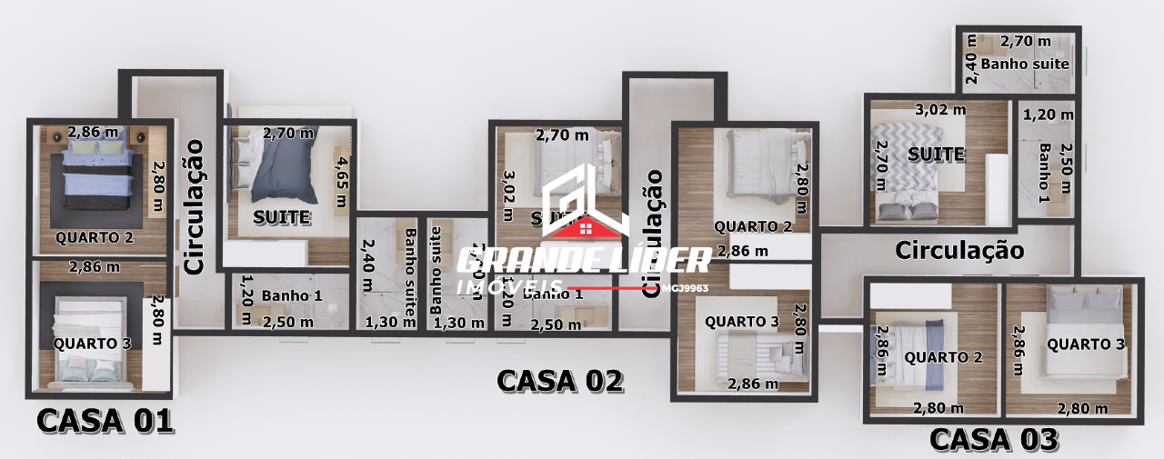 03 Quartos sendo 01 suíte